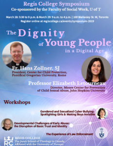 Though the problems are immense progress can be made, but this may require a new kind of thinking, a new approach. There are no true parallels in history. The progress we make together in a collaborative way as academics, teachers, law enforcement officers, health care workers, and students will determine the future of over one billion young people who suffer abuse and violence in their everyday lives. The symposium March 28-29th at Regis College is one small step in raising awareness of these issues and asking how can we assist in this new approach. Our keynote speakers are world renowned in their commitment to the dignity of young people today: Fr Hans Zollner SJ from Rome and Professor Elizabeth Letourneau from the USA. Our workshop leaders are local figures: Professor Faye Mishna Dean of Social Work at UofT; Fr Joseph Schner SJ faculty member at Regis College and members of local law enforcement personnel. Together with YOU we look forward to an informative, participative and forward looking symposium.